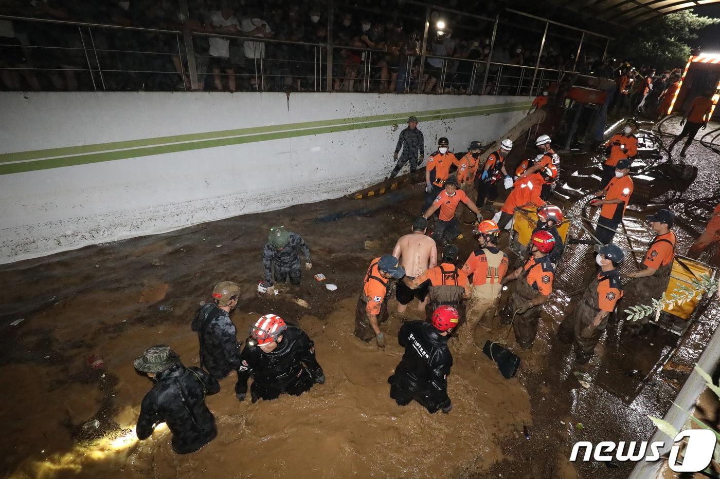 제11호 태풍 힌남노가 휩쓸고간 지난해 9월6일 오후 소방당국이 경북 포항시 오천읍의 한 아파트 지하 주차장에서 남성 생존자 1명을 구조해 나오고 있다. 2022.9.6/뉴스1 ⓒ News1 공정식 기자