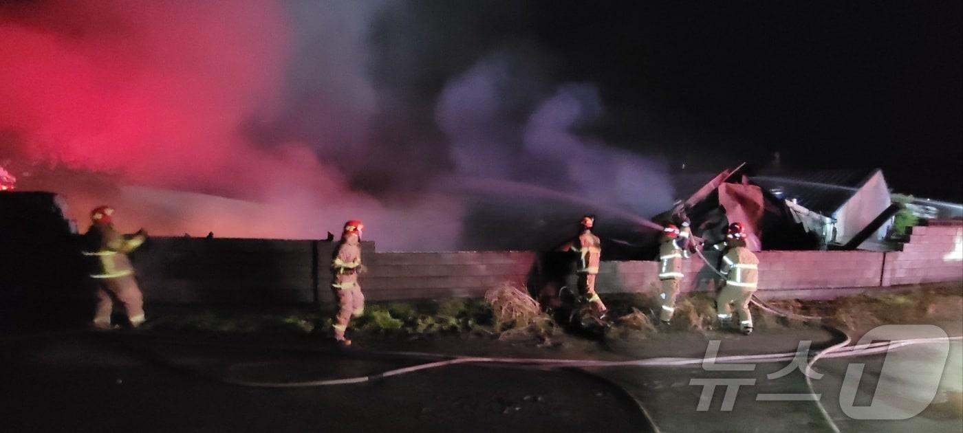 21일 오후 11시 59분쯤 경북 청도군 이서면 양원리 섬유원단 제조공장서 불이 나 출동한 소방관이 진화작업을 벌이고 있다.(경북소반본부 제공) 2024.6.22/뉴스1관련 키워드청도청도섬유공장청도공장화재청도화재정우용 기자 성주군, 중소기업에 설 운전자금 225억 지원청도군의회 "군수 욕설·모욕적 표현으로 군민 신뢰 훼손"