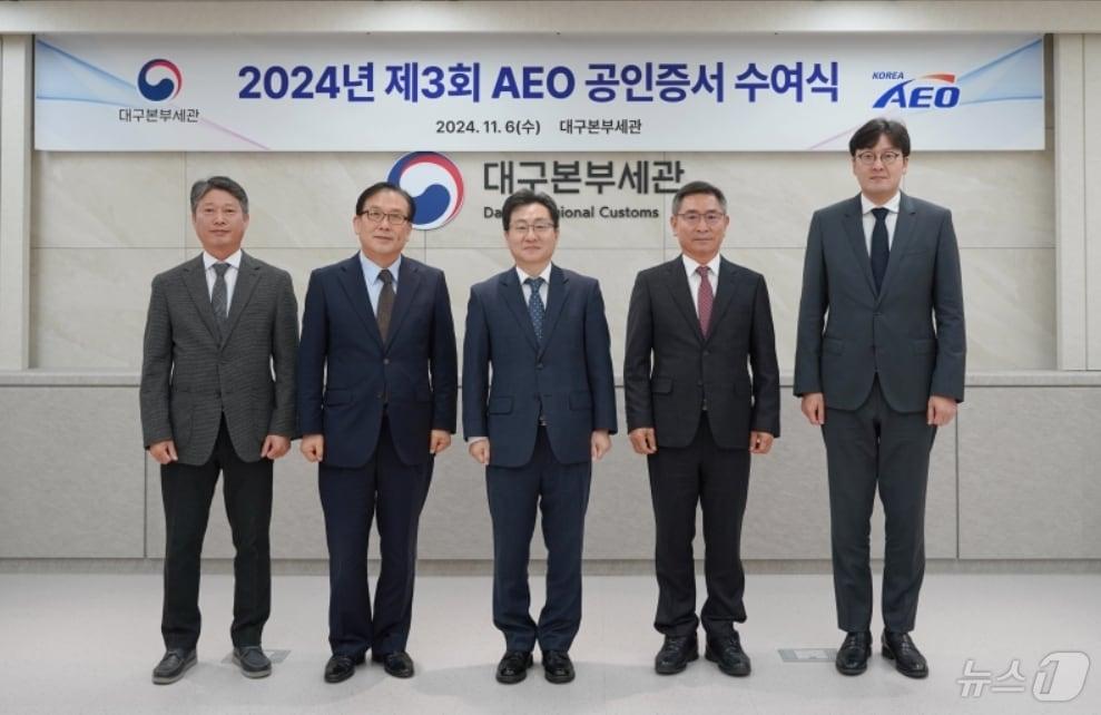 신규·갱신 5개 기업 AEO 공인으로 글로벌 경쟁력 강화강태일 대구본부세관장(가운데)이 신규·갱신 공인을 획득한 기업 관계자들에게 수출입안전관리우수업체(AEO) 증서를 수여한 뒤 기념사진을 찍고 있다.(대구본부세관 제공)관련 키워드대구본부세관AEO공인증서김종엽 기자 iM뱅크 차기 은행장 최종 후보 강정훈 부행장 선정[속보] iM뱅크 차기 은행장 최종 후보에 강정훈 부행장관련 기사대구본부세관, 수출입안전관리우수업체에 공인증서 수여대구본부세관, 수출입안전관리우수업체에 공인증서 수여대구세관, 수출입안전관리우수업체에 공인증서 수여
