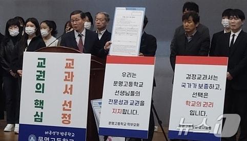 한국사 교과서 관련 '이념 논란'에 반박경북 경산 문명고등학교가 21일 기자회견을 열고 "교과서 선택은 헌법이 보장한 학교의 권리"라고 주장하고 있다. (문명고 제공) 2024.11.21/뉴스1관련 키워드문명고문명고교과서채택문명고한국사경산경산시정우용 기자 [오늘의 날씨]대구·경북(21일, 일)…낮 최고 3~8도로 '쌀쌀'대구 중구 태평로 1가 일부 지역 정전…30여분 만에 복구관련 기사교육부, '친일·독재' 논란 한국사 교과서 검정 취소 착수역사교과서 논란 경산 문명고 학부모들 "올바른 역사 배울 권리 보장"감사원 "교육부, 역사교과서 표지갈이 한 한국학력평가원 조치해야"대구경북 학부모 단체 "경산 문명고 한국사 교과서 채택 찬성""검인정 취소될 수도" 역사교과서 논란 경산 문명고에 시민단체 소송