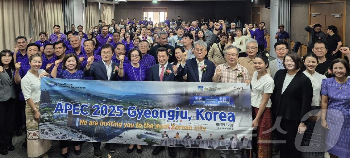 올 1월 태국 핏사눌록주에서 개최된 2025 세계문화유산도시 야간형 축제 컨퍼런스에서 송호준 부시장을 포함한 관계자들과 현지인들이 APEC 정상회의 성공개최를 응원하고 있다. (경주시 제공) 2025.2.4/뉴스1관련 키워드경주시APEC 성공개최최창호 기자 포항시, 범우·에코프로HN과 이차전지 염폐수처리 기술개발사업 협약포항 청림·일월동에 106억 들여 '맑음 마을' 조성관련 기사주낙영 경주시장 "APEC 이후 시민 의식 변화…글로벌 관광지 추진"작년 한해 5020만명 경주 찾았다…"APEC 시너지"경주시 제야의 종 타종식…APEC 성공개최 의미 되새겨[신년사] 주낙영 경주시장 "준마동행의 정신으로 힘찬 도약하겠다"경주시 'APEC 성공' 기념 사진·영상 공모전…15일 마감