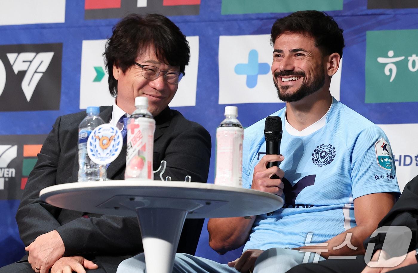 대구시는 13일 시민구단인 대구FC의 경기력 향상과 안정적 구단 운영을 위한 '대구FC 구단 운영 개선 방안'을 발표했다. 대구FC 박창현 감독과 세징야가 13일 서울 서대문구 스위스 그랜드 호텔에서 열린 '하나은행 K리그1 2025 개막 미디어데이'에서 미소 짓고 있다. (사진은 기사 내용과 무관함) 2025.2.13/뉴스1 ⓒ News1 김성진 기자관련 키워드대구시대구FCFC바로셀로나구단 운영K리그스페인 라리가선수 발굴남승렬 기자 대구시, 청소년 6명에 '드림장학금' 전달…매달 20만원 지원대구교육청, 학교지원센터 행정지원 강화…"교육 본연에 집중"관련 기사레반도프스키·야말 소속 명문 축구클럽 FC바로셀로나, 대구FC와 맞대결'15년 만에 방한' 바르셀로나 대구 경기 예매 시작…다시 '티켓 전쟁''15년 만의 방한' 바르셀로나, FC서울전 티켓 40분 만에 매진명문 바르셀로나 15년 만의 방한…'7말8초' 서울·대구와 2연전FC바르셀로나 대구 온다…8월4일 대구FC와 맞대결