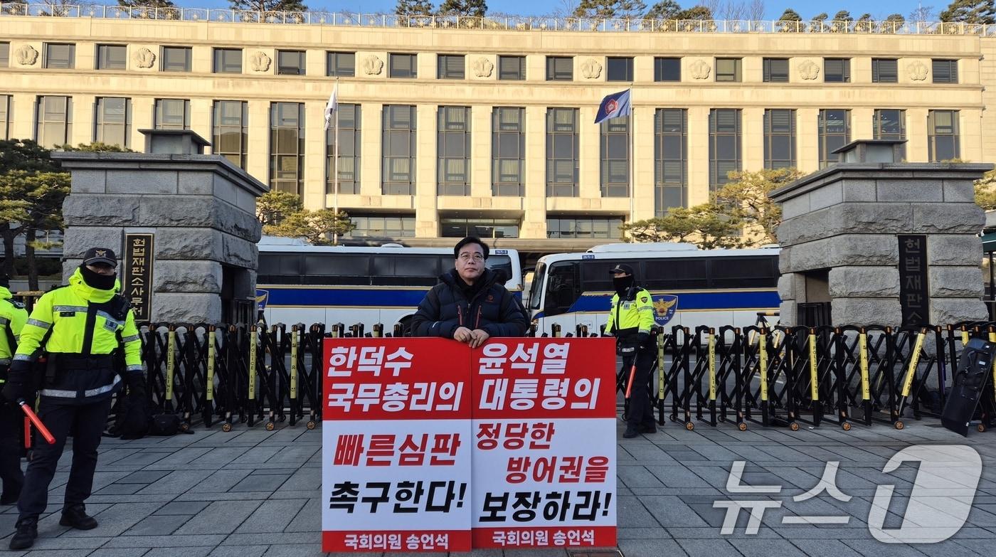 "정치적 판단 안 돼…尹에 충분한 소명 기회 줘여"국민의힘 송언석 의원(경북 김천)이 17일 헌법재판소 앞에서 1인 시위를 벌이고 있다. (송언석 의원실 제공. 재판매 및 DB금지) 2025.2.17/뉴스1 ⓒ News1 정우용 기자관련 키워드김천송언석의원헌법재판소정치적 편향탄핵소추안윤석열방어권尹비상계엄선포정우용 기자 성주군, 중소기업에 설 운전자금 225억 지원청도군의회 "군수 욕설·모욕적 표현으로 군민 신뢰 훼손"