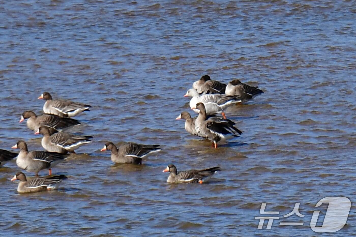17일 경북 경주시 강동면 형산강에서 쇠기러기 무리 속에 머리와 몸통이 흰색인 쇠기러기 한마리가 카메라에 잡혔다.2025.2.17/뉴스1 ⓒ News1 최창호 기자관련 키워드경주형산강흰색 쇠기러기알비뇨루시즘최창호 기자 포항시, 범우·에코프로HN과 이차전지 염폐수처리 기술개발사업 협약포항 청림·일월동에 106억 들여 '맑음 마을' 조성관련 기사[화보]길조일까?…희귀한 흰색 쇠기러기 경주서 발견