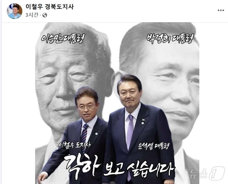이철우 경북도지사의 페이스북 2025.3.18/뉴스1 신성훈 기자관련 키워드경상북도안동시이철우이승만박정희윤석열탄핵반대탄핵각하신성훈 기자 '2조 피해' 의성 산불 실화자 집행유예…산림당국 손배 청구할까26명 숨졌는데…'경북 대형 산불' 낸 성묘객·농민 1심 집유, 왜?(종합)관련 기사애터미, 경북지역 산불 피해 복구 지원금 51억원 전달총무원장, 산불 이재민 위로…냉장고 700대, TV 1300대 전달전문건설공제조합, 산불피해 경북에 '모듈러 주택' 확보 지원"신속 복구 지원" 유정복 인천시장, 경북 안동 찾아 현장 점검오세훈, 경북 안동 방문…산불 피해 지원 대책 논의