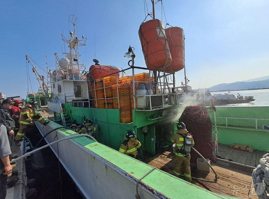 인명피해 없어20일 오후 3시7분쯤 경북 울진군 후포면 후포항에 정박한 89톤 통발어선에서 기계적 요인으로 추정되는 불이나 소방 당국이 화재를 진압하고 있다.(경북소방본부 제공. 재판매 및 DB 금지)2025.3.21/뉴스1관련 키워드경상북도울진군후포항화재경북소방울진해경경북경찰신성훈 기자 '2조 피해' 의성 산불 실화자 집행유예…산림당국 손배 청구할까26명 숨졌는데…'경북 대형 산불' 낸 성묘객·농민 1심 집유, 왜?(종합)