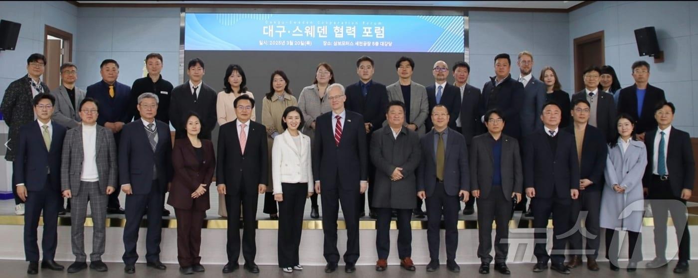 이유경 삼보모터스 사장(왼쪽 여섯번째)과 칼-울르프 안데르손 주 스웨덴 대사(왼쪽 일곱번째)가 '대구-스웨덴 문화·산업 협력 세미나' 참석자들과 기념촬영을 하고 있다.(삼보모터스 제공. 재판매 및 DB 금지)관련 키워드삼보모터스칼-울르프 안데르손협력 세미나김종엽 기자 강정훈 iM뱅크 행장 첫 경영전략회의서 "속도감 있는 은행" 강조한은 대구경북본부, 중소기업 설 자금 300억 지원