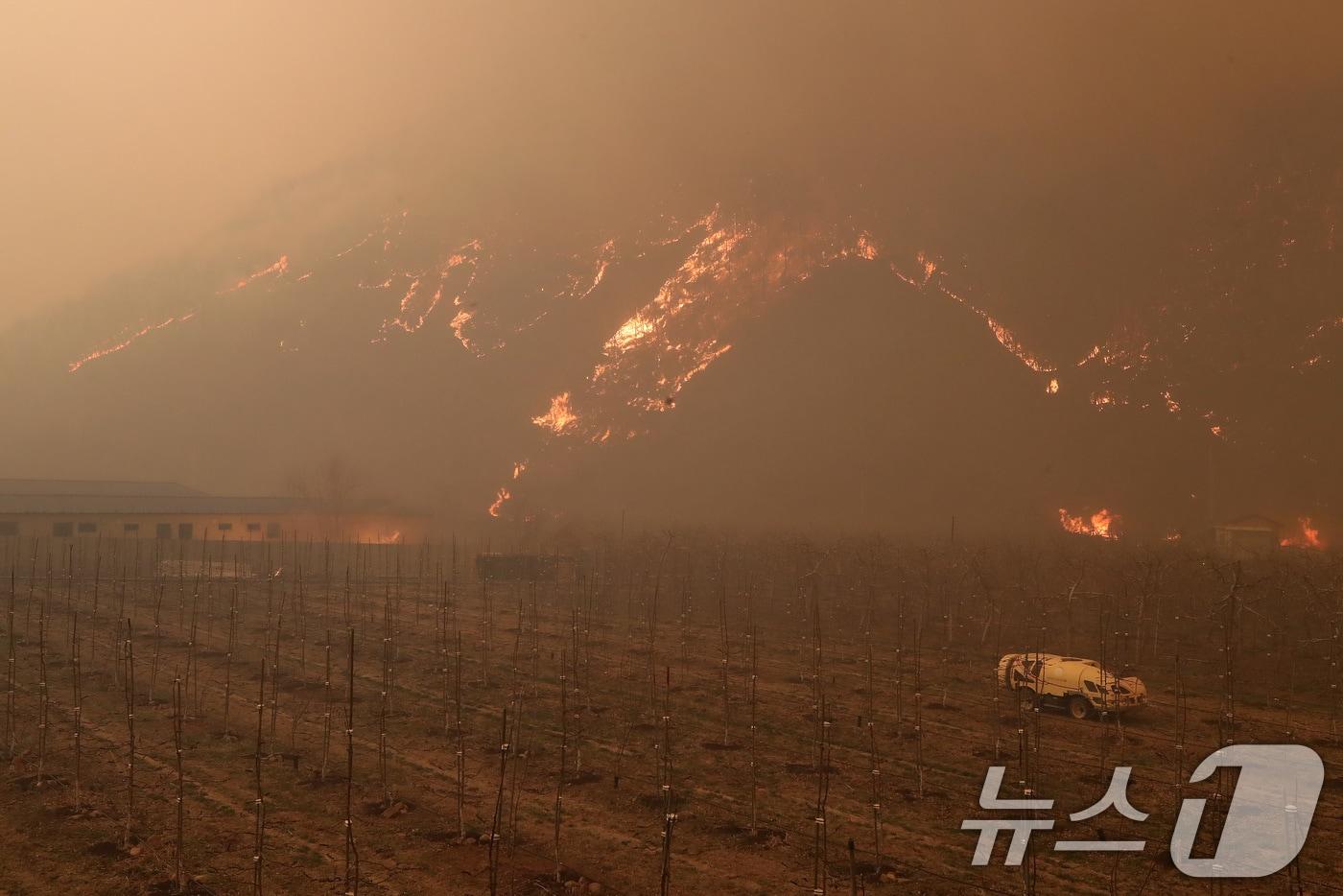 의성 산불 나흘째인 25일 오후 경북 안동시 길안면 일대에 강풍이 불어 산불이 확산하며 낮과 밤이 구분되지 않을 정도로 어두워져 있다. 2025.3.25/뉴스1 ⓒ News1 공정식 기자관련 키워드대형산불신성훈 기자 경북 고령서 산불…헬기 투입 40여분 만에 진화3년간 학교 시험지 16차례 유출…40대 학부모 1심서 징역 5년관련 기사여야, 2차 특검법 대치 속 11개 민생법안 처리…보이스피싱 방지법 등산림청 '산림·임업 전망' 행사 개최… 재난대응·목재주권 등 논의산불 발생 위험 고조…봄철 산불조심기간 20일로 앞당겨 시행경북도, 산불 대응 미흡 지자체에 '페널티"…초동진화 체계 강화건조특보에 대형 산불 우려…행안장관, 선제적 대응 특별 지시