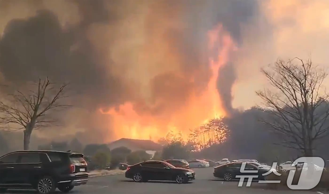 "산불 진화대 등 비상 대기"25일 경북 의성에서 발생한 산불이 강풍을 타고 안동시 길안면에 이어 풍산면 쪽으로 급속히 확산되고 있다. 사진은 동안동IC에 주차돼 있던 차량들이 이동하는 모습. (독자제공, 재판매 및 DB 금지) 2025.3.25/뉴스1 ⓒ News1 최창호 기자관련 키워드의성산불청송주민대피청송주왕산주왕산국립공원대형산불정우용 기자 성주군, 중소기업에 설 운전자금 225억 지원청도군의회 "군수 욕설·모욕적 표현으로 군민 신뢰 훼손"관련 기사"골짜기로 번진 최악 산불 속수무책…임도 확장하고 대형 헬기 필요"[일지] '경북 괴물 산불' 발생부터 극적 진화까지韓 전기 35% 만드는 영남…한전·한수원, 산불 2차 피해 방지 '총력'의성 산불 '축구장 6만4500개' 사상최대 피해 면적…진화 시간은?안동시 "남후면 무릉리 산불 확산 중…즉시 안동중학교로 대피"