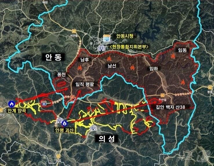 사망 22명, 건물 257곳 피해, 주민 1만8589명 대피26일 오후 5시 기준 안동시 산불 상황도(안동시 제공. 재판매 및 DB 금지)2025.3.26/뉴스1 신성훈 기자관련 키워드경상북도의성산불안동청송주왕산고은사대형산불신성훈 기자 포항서 70대 여성 몰던 SUV, 세차장 돌진…2명 부상한밤 포항 구룡포 횟집서 불…23분 만에 진화관련 기사윤호중 장관 "경북 의성군 산불 화재, 조기 진화에 총력"하이트진로, 연말 맞아 재해·재난 피해 이웃에 생필품 후원정부, 경북 의성 산불 피해지역 안전관리 실태 점검애터미, 경북지역 산불 피해 복구 지원금 51억원 전달스타벅스, 소방의 날 맞아 소방공무원 1000명에게 커피 전달