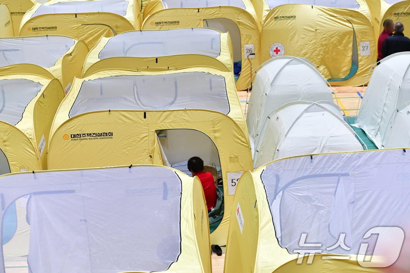 29일 오전 경북 영덕군 산불 이재민 대피소인 영덕읍국민체육센터에 임시 텐트 100여개가 설치됐다. 국민체육센터에는 지품면과 매정리 등 이재민 400여명이 나흘째 대피해 있다. 2025.3.29/뉴스1 ⓒ News1 최창호 기자관련 키워드영덕영덕국민체육센터산불 대피소대형산불최창호 기자 포항북부소방서, 생명 살린 소방관 17명에 '하트세이버' 수여포항농기센터, 농촌지도·기술 보급 시범사업 추진관련 기사기온 상승에…행안부, 산불 임시대피시설 방역관리 점검영덕군, 산불 피해 주민 상하수도 요금 6개월간 면제영덕 산불 대피소 운영 종료…이재민들 공공시설 등으로 거쳐 옮겨영덕보건소, '찾아가는 보건소'로 산불 피해 주민 건강 회복 지원영덕 산불 이재민들 "오늘은 다리 펴고 잘 수 있을 것 같네"