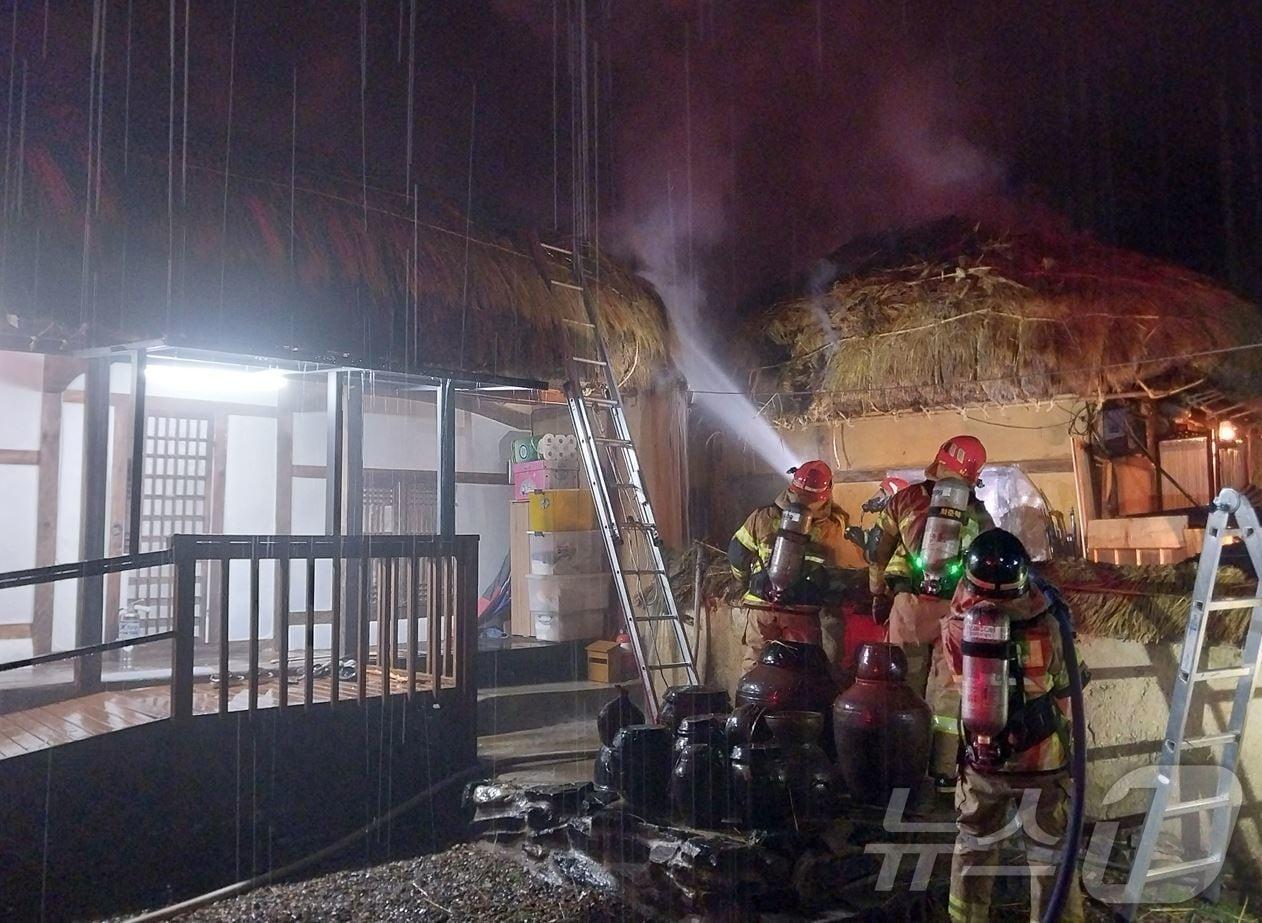50분 만에 불길 잡아, 70대 남성 손가락에 화상3일 오후 8시 5분쯤 경북 안동시 풍천면 하회마을 내에서 불이 나 소방 당국이 불길을 잡고 있다. (경북소방본부 제공. 재판매 및 DB 금지) 2025.4.3/뉴스1관련 키워드안동하회마을.정우용 기자 청도 소싸움 24일 개막…연말까지 토·일 1224경기 진행"공무원 사칭 주의"…조현일 경산시장 '노쇼 사기 예방 챌린지' 참여관련 기사'국가유산에 기념식수' 그 많은 게 다 불법…난감한 국가유산청안동 하회마을서 일반 차량 번호판 단 전동차 투어 논란13개국 주한대사부인, 경북 문화체험 후 "진짜 한국 느꼈다"정청래, 국군의 날 기념식 참석 후 英대사 접견…안보·외교 행보'안동 사위' 크룩스 영국대사, 명예 안동시민 된다
