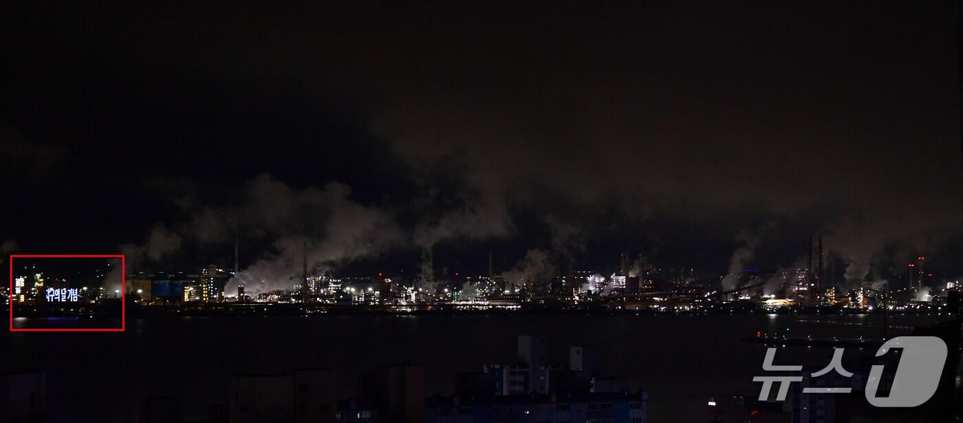 지구의 날인 22일 오후 포스코 포항제철소가 경관 조명이 꺼져있다. 포스코 포항제철소는 지구의 날을 맞아 이날 오후 8시부터 10분간 소등행사에 참가하고 있다. 붉은색 네모안에 있는 소통보드에 '지구의 날'을 알리는 문구가 표출되고 있다. 지구의 날은 기후변화와 환경오염의 심각성을 알리기 위해 이날 오후 8시부터 일정 시간 동안 조명을 끄는 '소등 행사'가 진행된다. 2025.4.22/뉴스1 ⓒ News1 최창호 기자