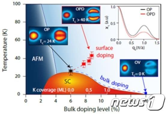 철-닉토겐 초전도체에 도핑(주입) 정도(X축)에 따른 임계온도(Y축) 변화. ⓒ News1