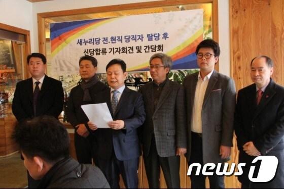 대전지역 새누리당 전, 현직 당직자 10명이 5일 오전 대전 서구 둔산동 한 커피숍에서 탈당 기자회견을 갖고 있다. 윤석대 전 새누리당 중앙당 청년위원회 수석부위원장이 기자회견문을 낭독하고 있다. 이날 기자회견에는 탈당하기로 한 10명 중 6명이 참석해 탈당계를 작성했다. 사진=박종명 기자)ⓒ News1