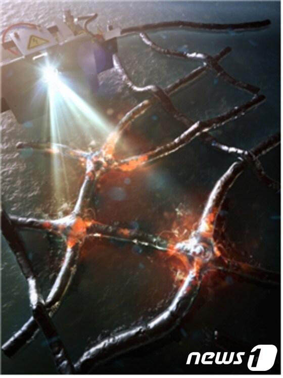 플래시 빛을 쬐어 은 나노와이어가 그물망처럼 연결된 사진ⓒ News1