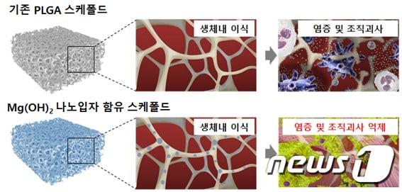 신장조직 재생용 스케폴드에서 수산화마그네슘 나노입자의 염증억제 메카니즘(한국연구재단 제공)ⓒ News1