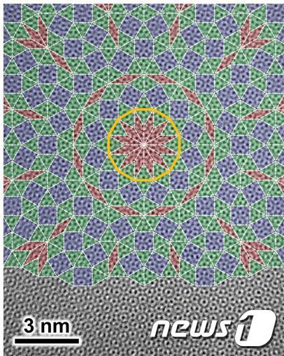 2층의 그래핀을 30도 회전시켜서 제작된 그래핀 준결정의 투과형 전자 현미경 이미지(한국연구재단 제공)ⓒ News1
