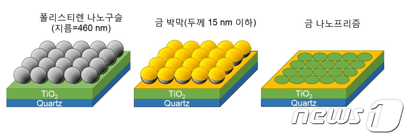 금 나노프리즘 제조 과정(IBS 제공)ⓒ 뉴스1금 나노프리즘 계면에서의 핫전자 움직임 실시간 관찰(IBS 제공)ⓒ 뉴스1박정영 부연구단장(왼쪽, 교신저자)), 이현화 박사과정생(1저자)ⓒ 뉴스1