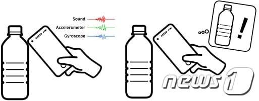 잡음 많은 곳 83%, 실내 공간 98%의 정확도물병을 노크했을 때의 반응 모습(KAIST 제공)ⓒ 뉴스1왼쪽부터 KAIST 공태식 박사과정, 조현성 석사과정, 이성주 교수(KAIST 제공)ⓒ 뉴스1