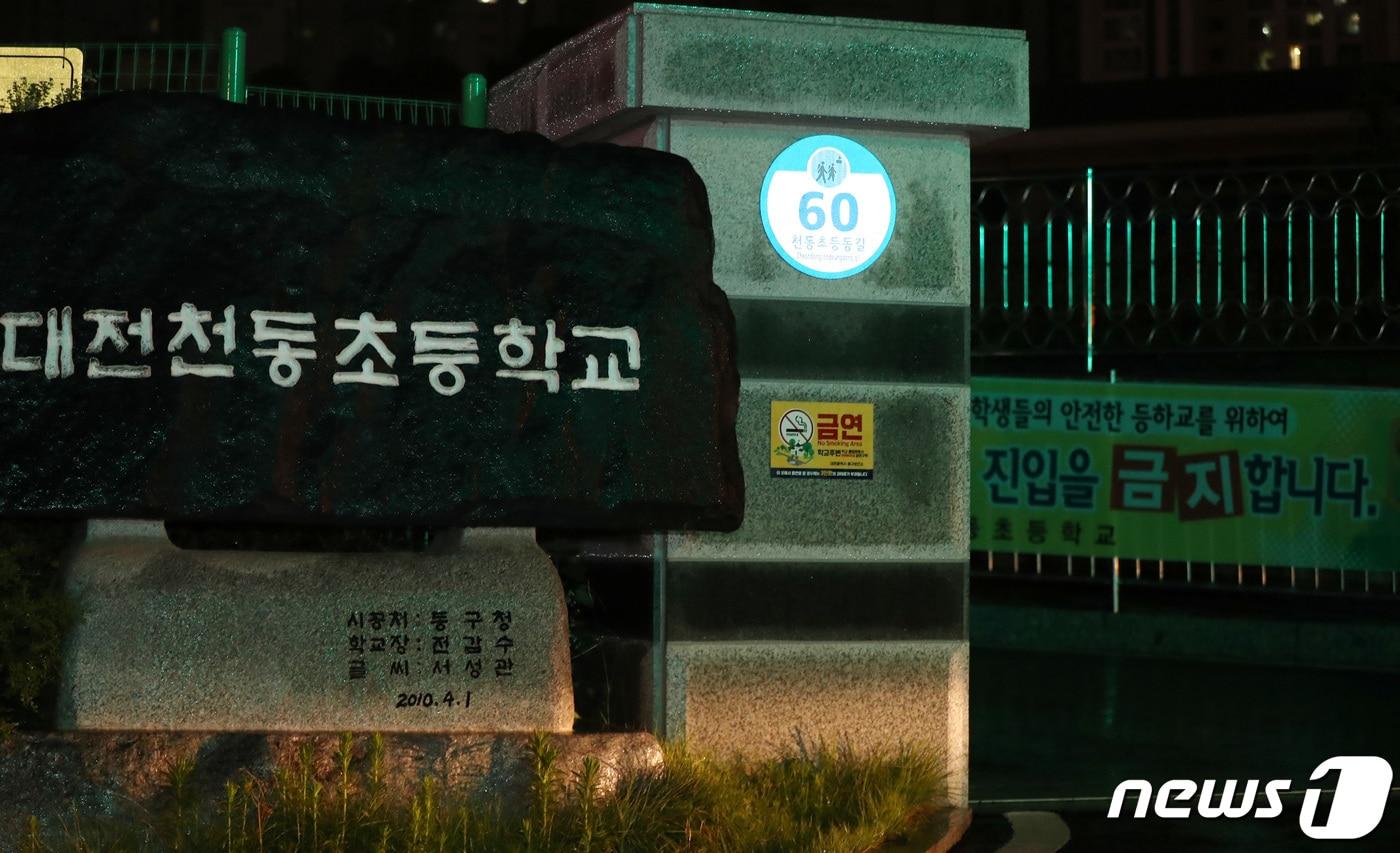 대전에서 코로나19 학생 확진자가 2명 발생한 29일 저녁 대전 동구 대전천동초등학교 교문 앞이 적막한 모습을 보이고 있다. 2020.6.29/뉴스1 ⓒ News1 김기태 기자