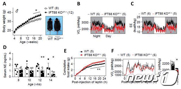 연세대 김기우 교수팀…비만·당뇨 동반 골질환 표적 약물개발 기대시상하부 복내측핵 SF-1 뉴런 일차섬모 결손 시 에너지 대사의 항상성이 무너짐(한국연구재단 제공) ⓒ 뉴스1시상하부 복내측핵 일차섬모 결손에 의한 골 항상성의 변화ⓒ 뉴스1관련 키워드세포안테나일차섬모대사조절연세대치대김기우교수