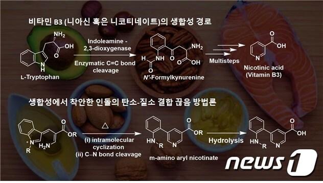 새로운 분자설계 실마리비타민 B3의 생합성 경로에서 착안한 아자인돌의 탄소-질소 결합 끊음 방법론(사진제공:서울대 화학과 박승범 교수)ⓒ 뉴스1관련 키워드서울대생합성열린비타민B3합성법개발관련 기사'공부에 왕도 없다' 중앙대 졸업 박사과정생, 광주 동강대 입학