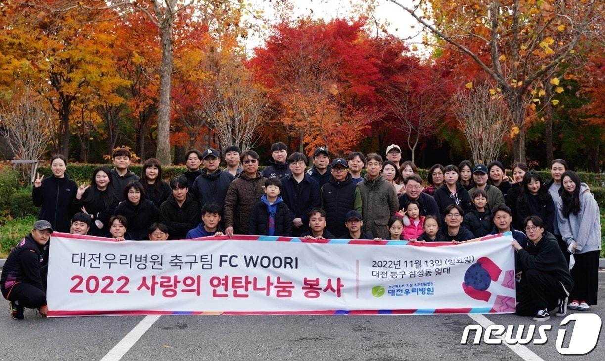 대전우리병원·문창신협·서대전우체국 등 소외된 이웃과 온정대전우리병원 축구동아리 FC WOORI가 13일 동구 삼성동 일원에서 사랑의 연탄 나눔 봉사를 하고 기념촬영을 하고 있다. (대전우리병원 제공) /뉴스1서대전우체국 적십자봉사회가 12일 중구 대사동 일원에서 사랑의 연탄 배달 봉사를 했다. (대전 중구 제공) /뉴스1육군 제205특공여단 대전·충청 전우회가 12일 대덕구 장동에서 사랑의 연탄 나눔 봉사를 했다. (대전자원봉사연합회 제공) /뉴스1