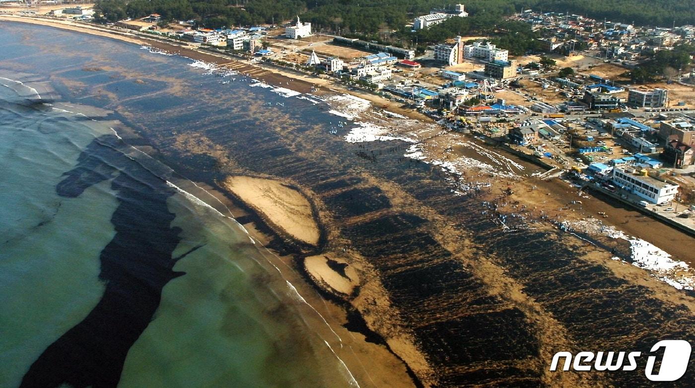2007년 기름유출사고 당시 소원면 만리포 방제작업에 나선 자원봉사자들. (태안군 제공) /뉴스1