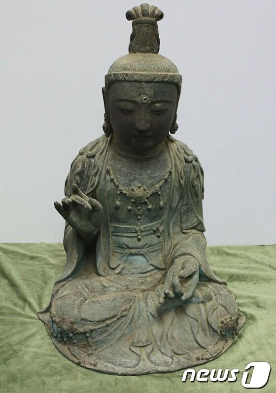 ‘반출 경로 불분명’ 동조여래입상 2015년 일본 반환 사례대법서 판결 뒤집긴 힘들 듯…국제 추세는 원소유지에 반환2012년 국내 절도단이 일본 대마도 관음사에서 훔쳐 밀반입한 금동관음보살좌상. (문화재청 제공) /뉴스1