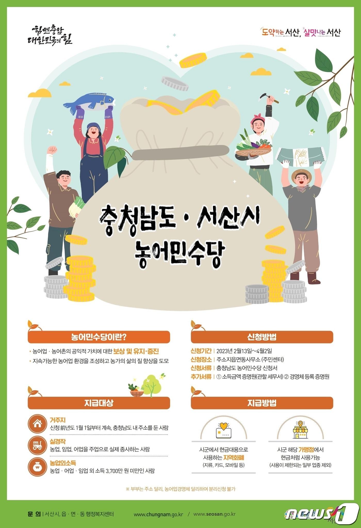 서산시, 4월2일까지 농어민수당 신청 접수
