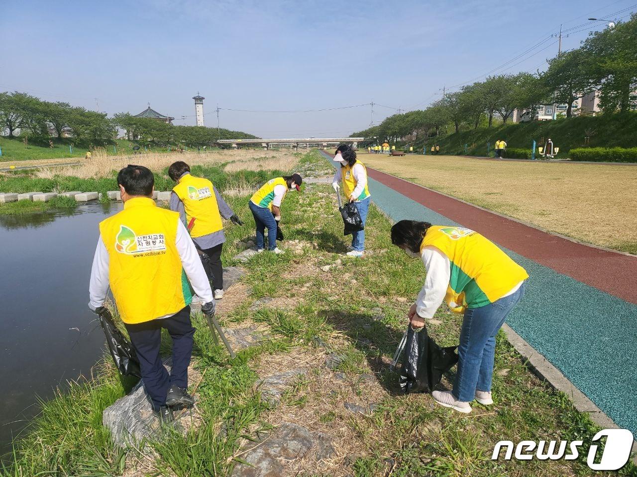 “아름다운 자연을 후대에 유산으로 물려주자”22일 신천지자원봉사단 서산지부 회원 90여명의 회원들이 해미천 모든 주변을 다니며 환경정화 활동을 펼치는 모습(신천지자원봉사단 서산지부 제공)
