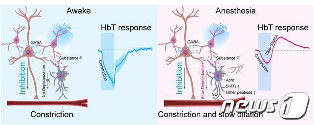 수면장애 메커니즘 규명 기대깨어있는 상태와 마취(수면) 상태 PV뉴런 활성에 의한 혈관 반응 기전 모식도.(기초연 제공)/뉴스1왼쪽부터 김성기 IBS 뇌과학 이미징 연구단장(교신저자), Thanh Tan Vo 박사과정 연구원(제1저자), 임근호 기술연구원이 기념촬영을 하고 있다.(기초연 제공)/뉴스1관련 키워드기초과학연구원IBS뉴런뇌혈류수면장애치매