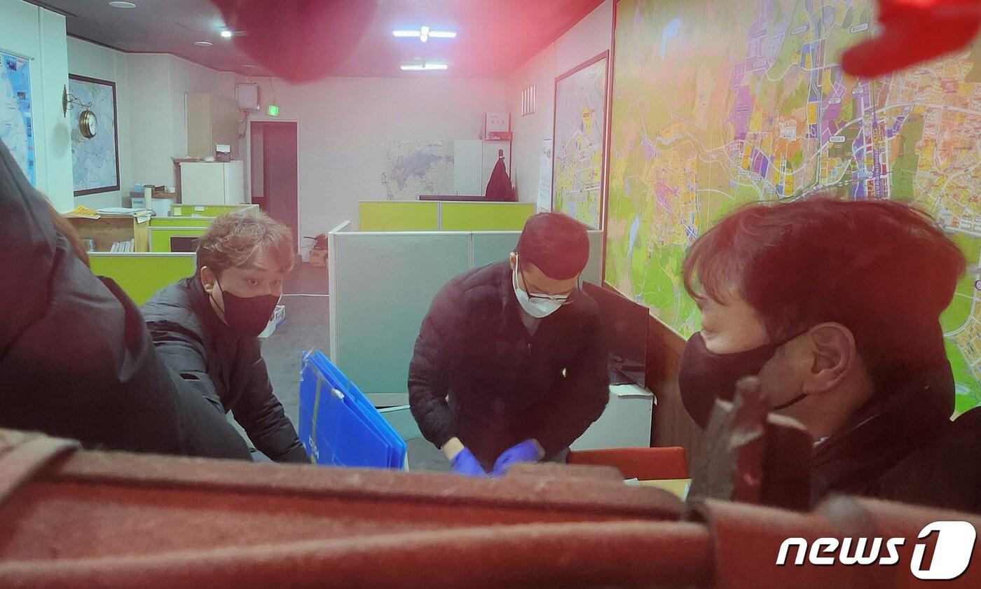 6~8명, 2개팀 주거지·사무실 탐색…박스 2개 분량 압수자택에서 가족이 압수 절차 지켜봐경찰이 3일 이재명 더불어민주당 대표에게 흉기를 휘두른 김모씨가 운영하는 충남 아산 배방읍 부동산 사무실에 대한 압수수색을 진행하고 있다. 경찰은 이날 김씨의 주거지와 부동산 사무실에 대해 동시 압수수색을 진행했다. 2024.1.3/뉴스1 ⓒ News1 김기태 기자경찰이 3일 이재명 더불어민주당 대표에게 흉기를 휘두른 김모씨가 운영하는 충남 아산 배방읍 부동산 사무실에 대한 압수수색을 진행하고 있다. 경찰은 이날 김씨의 주거지와 부동산 사무실에 대해 동시 압수수색을 진행했다. 2024.1.3/뉴스1 ⓒ News1 김기태 기자이시우 기자 집행유예 중 음주운전 사망 사고 60대 징역 6년민주당 충남도당 "정부, 행정통합 인센티브 파격적"