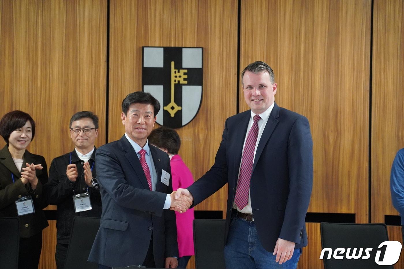 지난해 5월 박범인 금산군수의 독일 방문 모습.(금산군 제공)/ 뉴스1