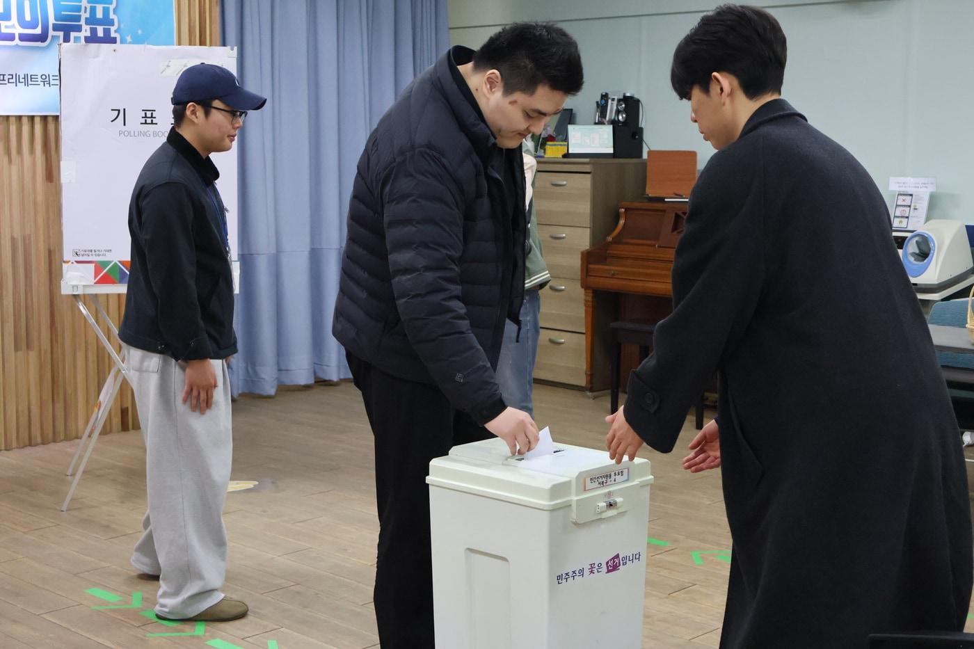 15일 충남 천안 다함장애인자립생활지원센터 교육실에서 열린 모의 투표에서 한 참가자가 투표를 하고 있다. (베리어프리네트워크 제공) /뉴스1