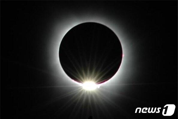 2024년 개기일식 다이아 반지의 순간.(한국천문연구원 제공)/뉴스1관련 키워드한국천문연구원개기일식관련 기사3일 밤 올해 첫 보름달과 첫 유성우 동시에 본다부산시교육청창의융합교육원, 25일 천문학 특별 강연