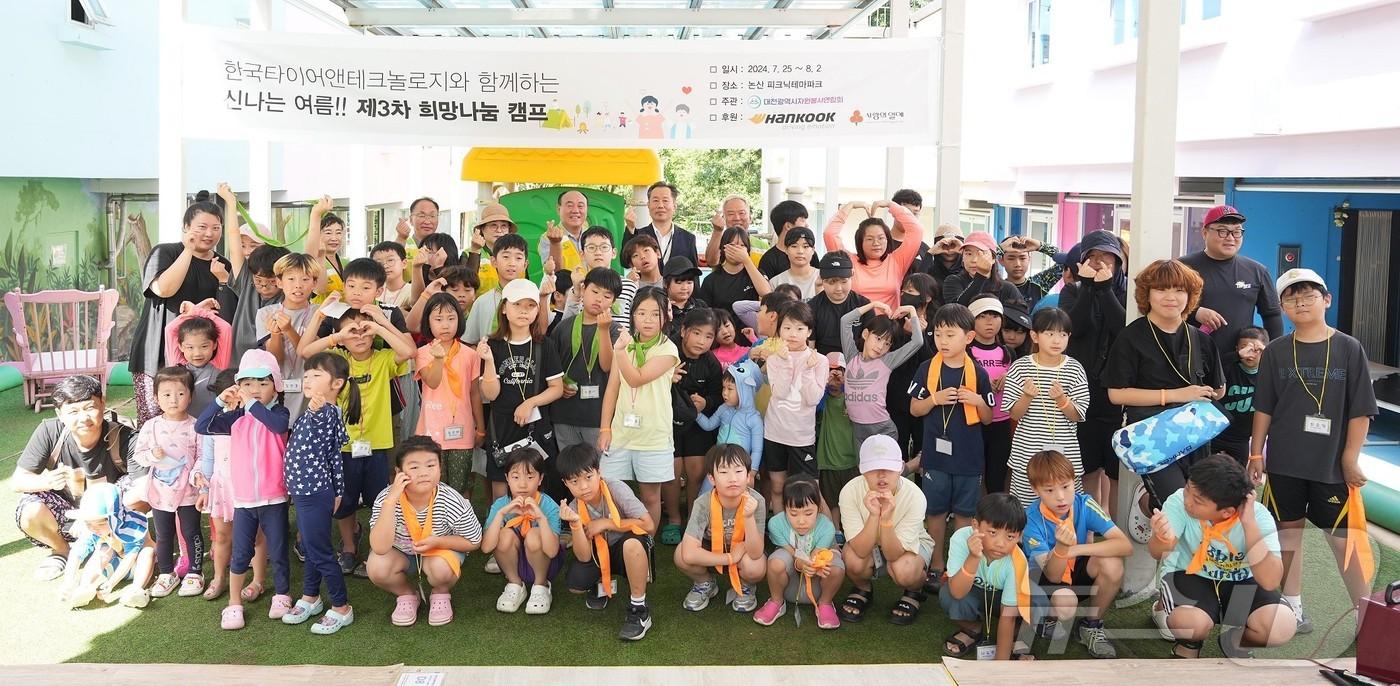 ‘2024 희망나눔 캠프’에서 참가자들이 단체사진을 찍고 있다. (한국타이어 제공) /뉴스1