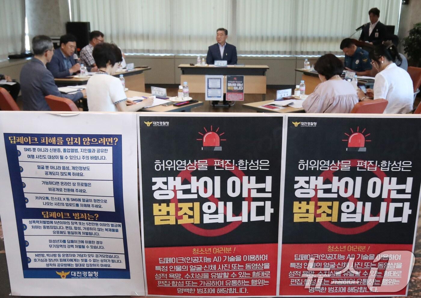 30일 대전경찰청에서 경찰, 대전시, 대전시교육청 등 유관기관 관계자들이 딥페이크 성 착취물 관련 범죄 집중단속 회의를 하고 있다. 2024.8.30/뉴스1 ⓒ News1 김기태 기자