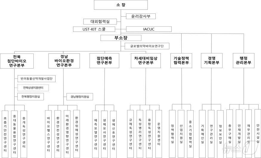안전성평가연구소 개편 조직도.(KIT 제공)/뉴스1관련 키워드안전성평가연구소KIT관련 기사내년도 식의약 안전관리 예산 10.9% 오른 8320억…역대 최대KISTI-독성연, 데이터 기반 독성연구 혁신 업무협약 체결알테오젠, 1분기 매출 837억 원…역대 최대 분기 매출 달성