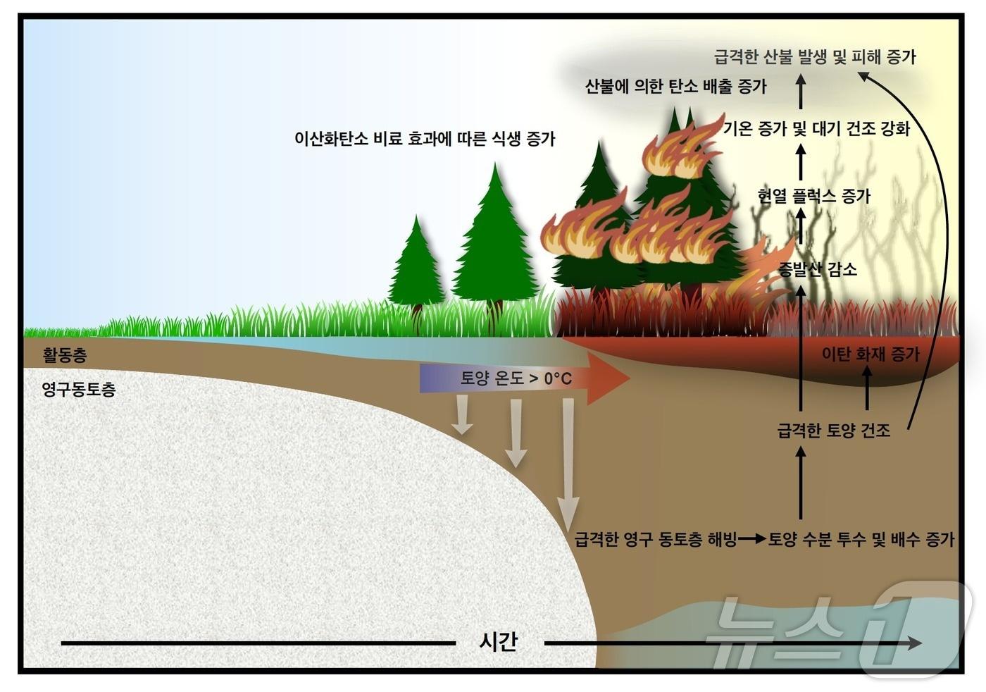 가속화된 지구온난화로 인해 급격한 영구동토층 해빙에 따른 북반구 극지역 산불 강화 메커니즘에 대한 모식도. (기초연 제공) /뉴스1