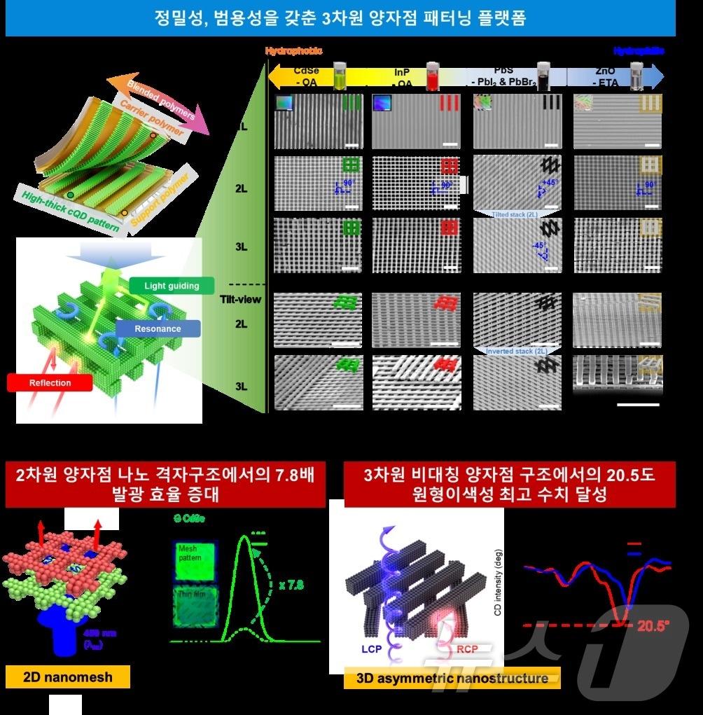 일반 퀀텀닷 필름 대비 7배 이상 높은 발광 효율3차원 퀀텀닷 패터닝 기술. (KAIST 제공)/뉴스1왼쪽부터 KAIST 정연식 교수, 신홍주 박사, 김건영 박사. (KAIST 제공)/뉴스1관련 키워드한국과학기술원KAIST동국대퀀텀닷관련 기사"옆집 형처럼 창업자가 의지하는 존재, 액셀러레이터 역할이죠""스타트업 '구주거래' 길 터주면 얼어붙은 벤처투자 봄 온다"서울시, 산업 AI 전환 속도…AX 혁신센터·AI 대학원 협의체 출범"깨어나는 교육, 연결되는 우리"…국제선명상대회 컨퍼런스 성료공교육과 명상 접점 찾는다…29일 선명상대회 국제컨퍼런스