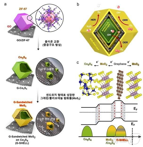 신소재공학과 강정구 교수 연구팀산화 그래핀/금속-유기 골격체에서 기인한 그래핀 기반의 중공구조를 지닌 복합 기능성 촉매소재 (G-SHELL)의 합성 과정과 이종 접합구조에 의해 제어된 밴드구조 및 내부 전계효과 모식도.(KAIST 제공)/뉴스1KAIST 신소재공학과 강정구 교수(가운데)팀이 기념촬영을 하고 있다.(KAIST 제공)/뉴스1관련 키워드한국과학기술원KAIST카이스트 신소재공학과자가발전형 수소 생산 시스템수소관련 기사뿌리면 1초 만에 지혈…KAIST, 차세대 파우더 지혈제 개발문어 다리처럼 감싸 빛으로 췌장암 치료하는 초소형 LED 장치 개발'나노 물방울'로 초미세먼지 99.9% 제거하는 공기정화 기술 개발"전기차 전해질 첨가제, 하이니켈 배터리 성능 떨어뜨려"나노 크기 물방울 측정 성공…수소·반도체·배터리 연구 새 돌파구