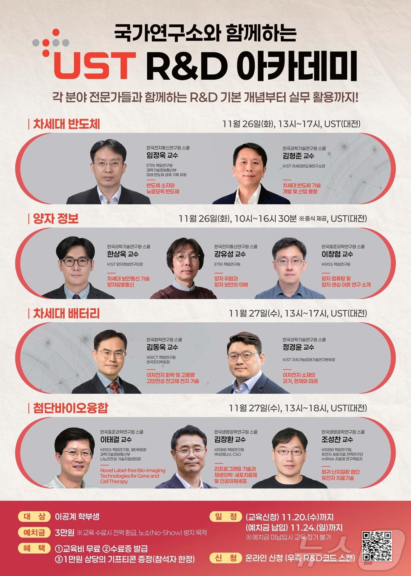 국가연구소와 함께하는 UST 알앤디 아카데미 포스터. (UST 제공)./뉴스1관련 키워드과학기술연합대학원대학교USTUST R&D 아카데미관련 기사UST, 이공계 대학생 대상 무료 'R&D 아카데미' 개최