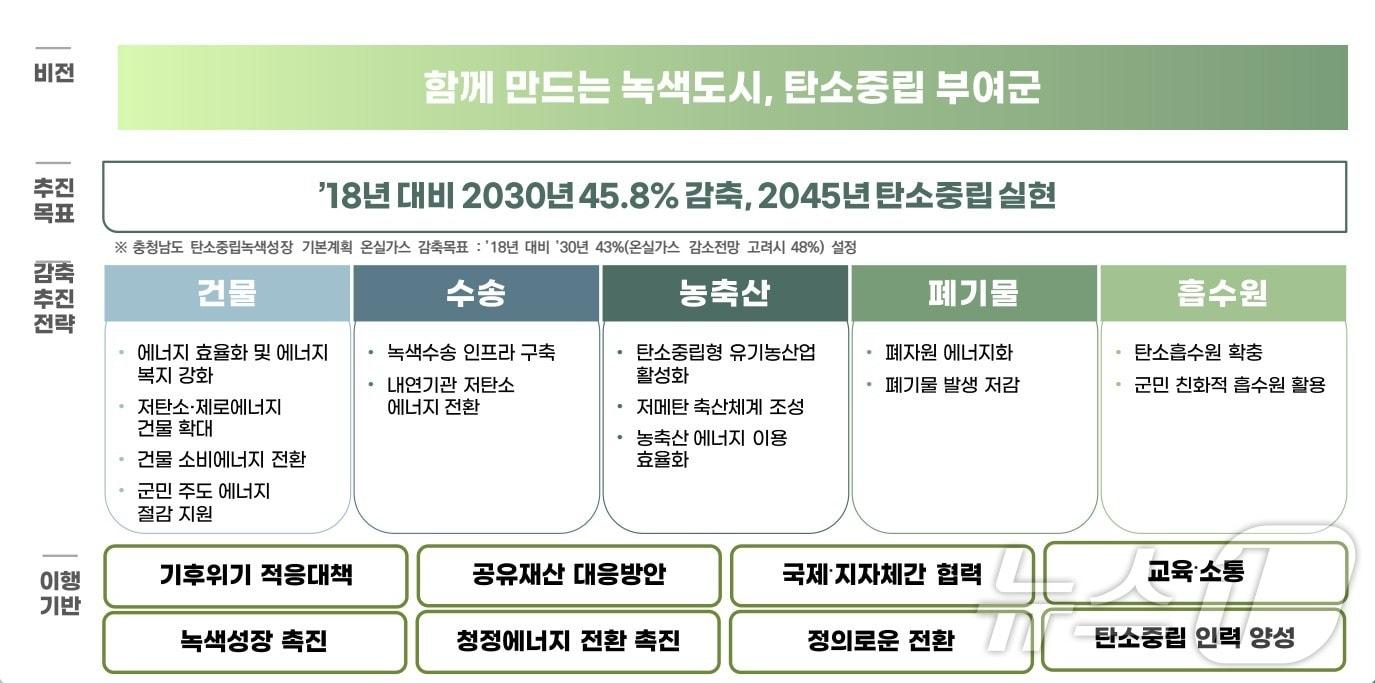 2030년까지 2018년 온실가스 배출량 대비 45.8% 감축부여군 탄소중립 비전 및 전략 이미지. /뉴스1김기태 기자 박희조 대전 동구청장 국립현충원 참배로 첫 공식 일정 시작대전 서구 2026년 시무식 개최…주민 위한 행정 노력 다짐