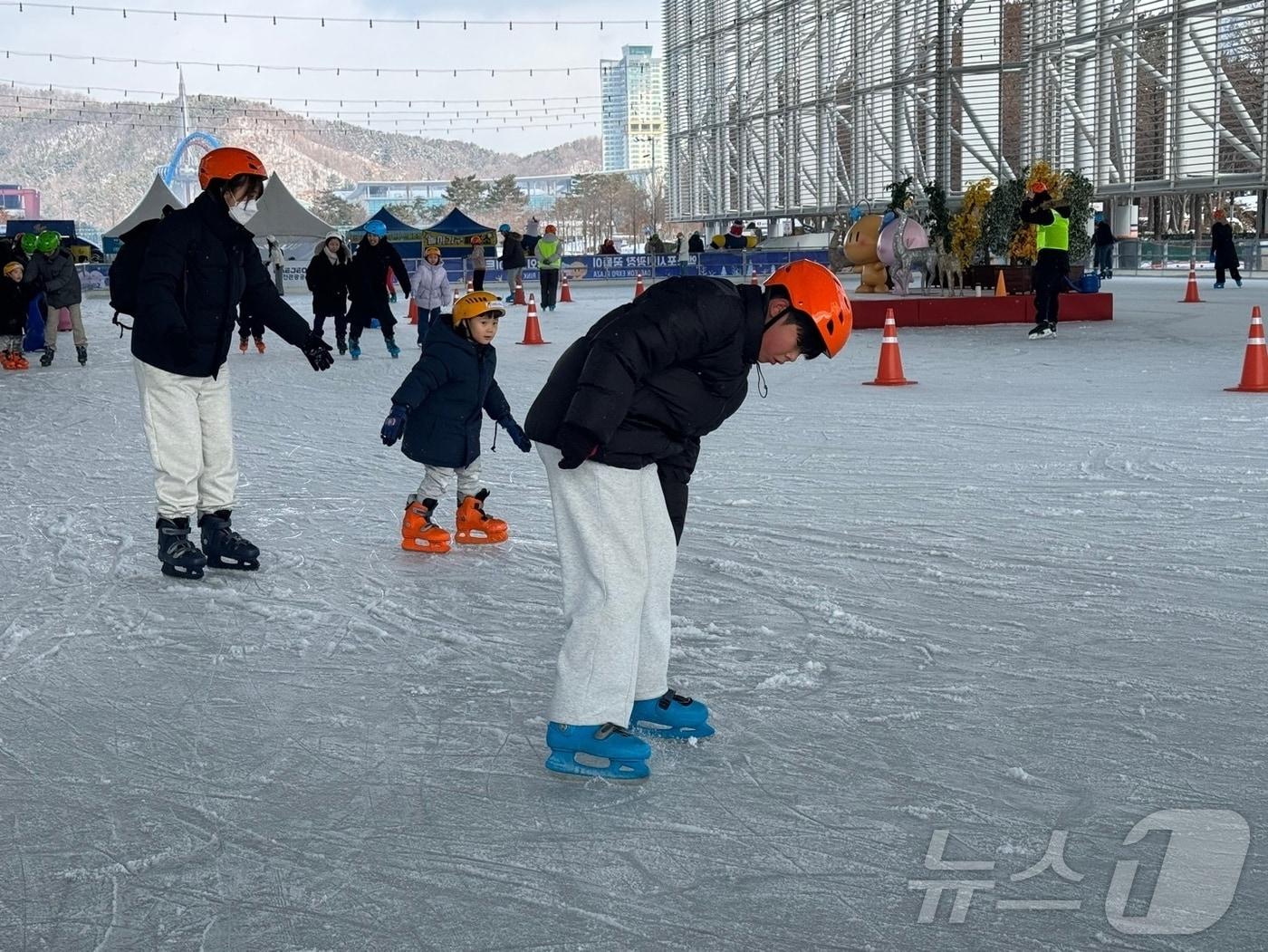 29일 대전 유성구 대전엑스포시민광장 야외스케이트장에서 나들이 나온 시민들이 겨울을 즐기고 있다. 2024. 1. 29. 뉴스1 ⓒ News1 양상인 기자