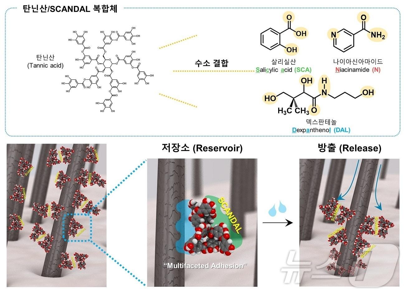탄닌산-SCANDAL 복합체에 의한 탈모 완화 메커니즘 모식도.(KAIST 제공)/뉴스1KAIST 화학과 김은우 박사과정(왼쪽)과 이해신 교수가 기념촬영을 하고 있다.(KAIST 제공)/뉴스1관련 키워드탈모 치료제탈모한국과학기술원KAIST카이스트 화학과 이해신 교수탈모예방관련 기사탈모 케어도 대중화…뷰티 업계 '프리미엄→초저가' 전략 선회