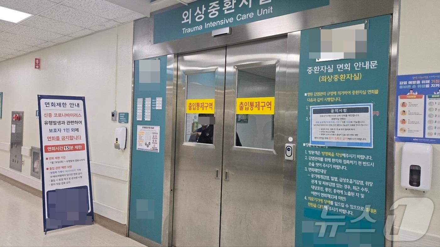 사복 경찰 24시간 대기…"아직 인공호흡기 낀 상태"환자 목록표엔 빈 종이…의료진, 취재진 질문에 묵묵부답 13일 초등생 피습사건의 가해자 교사가 입원 중인 대전의 한 대학병원 중환자실 안에서 형사와 의료진이 이야기를 나누고 있다. 2024.2.13 /뉴스1 ⓒ News1 허진실 기자 13일 초등생 피습사건의 가해자 교사가 입원 중인 대전의 한 대학병원 중환자실의 환자목록표에 빈 종이가 끼워져 있는 모습. 2024.2.13 /뉴스1 ⓒ News1 허진실 기자13일 초등생 피습사건의 가해자 교사가 입원 중인 대전의 한 대학병원 중환자실 앞에서 면회객들이 들어가고 있다. 2024.2.13 /뉴스1 ⓒ News1 허진실 기자