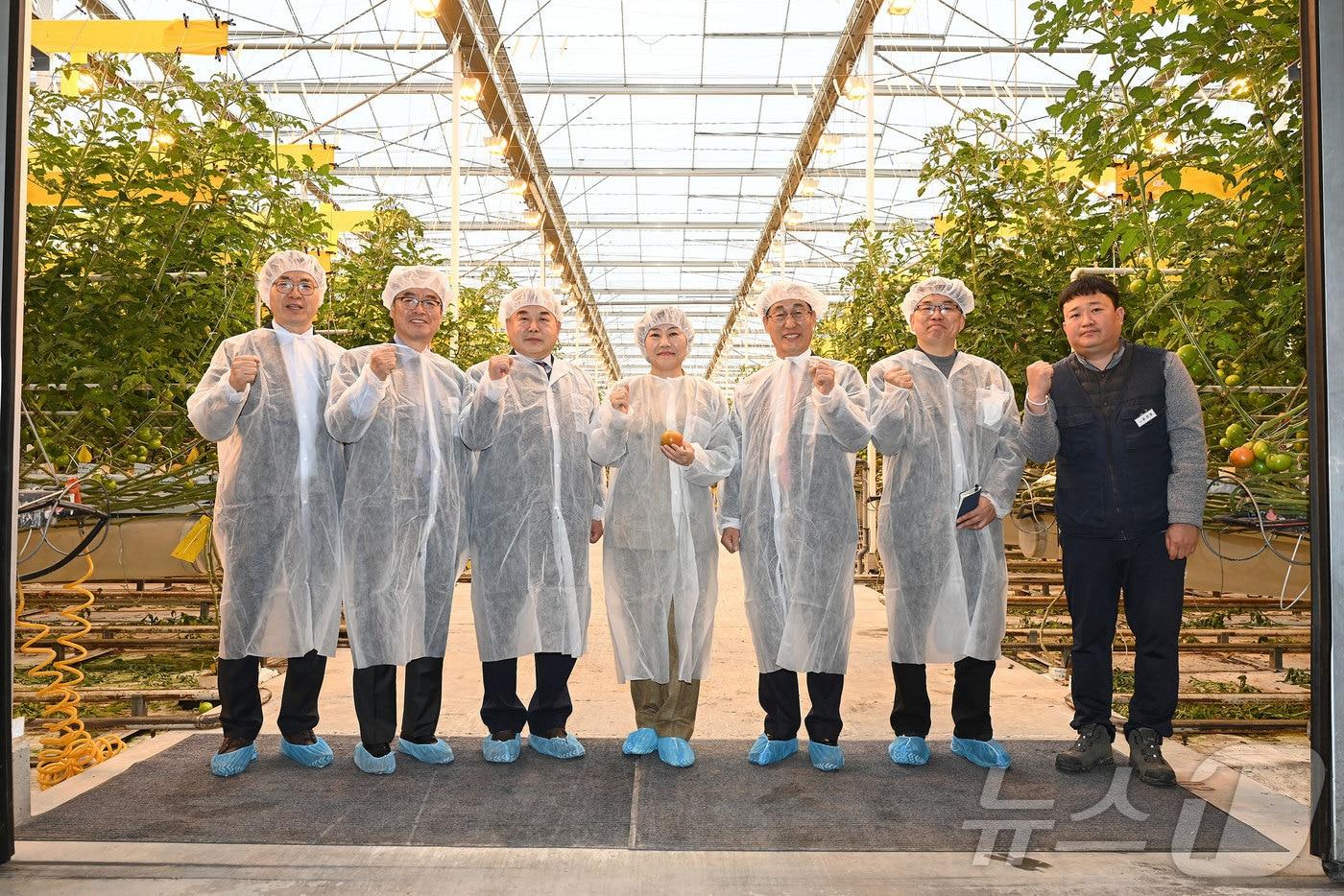 송미령 농림축산식품부 장관(가운데)과 이용록 홍성군수(오른쪽 세번째) 등이 기념촬영을 하고 있다. (홍성군 제공. 재판매 및 DB금지) /뉴스1관련 키워드농림부장관홍성군홍성군수홍성 스마트영농