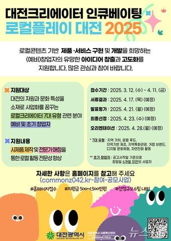 로컬 콘텐츠·창업 아이디어 보유 최대 1500만원 지급‘2025 로컬플레이 대전’ 사업 예비·초기창업자 모집 안내문.(대전시사회혁신센터 제공.재판매 및 DB금지) /뉴스1 관련 키워드대전시사회혁신센터로컬플레이창업아이디어